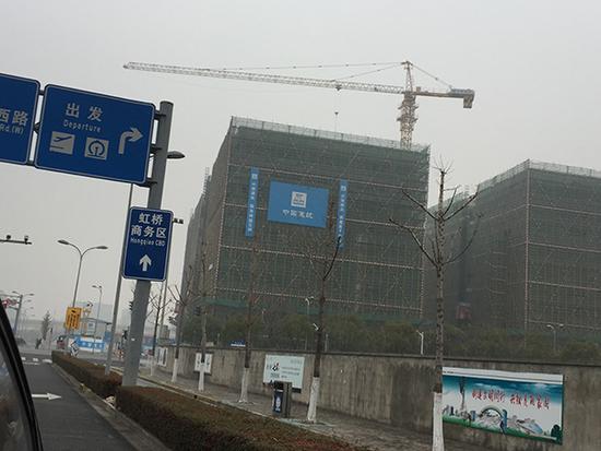 1月19日,在上海申昆路、丰虹路、申兰路围合而成的地块内,多幢浑身包裹着脚手架和防护网的建筑颇为壮观,这里就是正在建设中的长三角国际贸易展示中心。“这里距离虹桥火车站直线距离1.2公里,步行可达;距离国家会展中心也只有3.8公里,开车8分钟即可到达。”在项目施工现场,工作人员耿瑾告诉澎湃新闻记者。